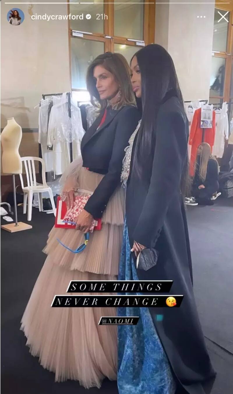 El domingo, día del cumpleaños de la supermodelo, Cindy compartió varias fotos antiguas de ambas en su época de oro en las pasarelas, además de una imagen más reciente de ambas detrás de bambalinas en un show de Off-White en la semana de la moda en París.