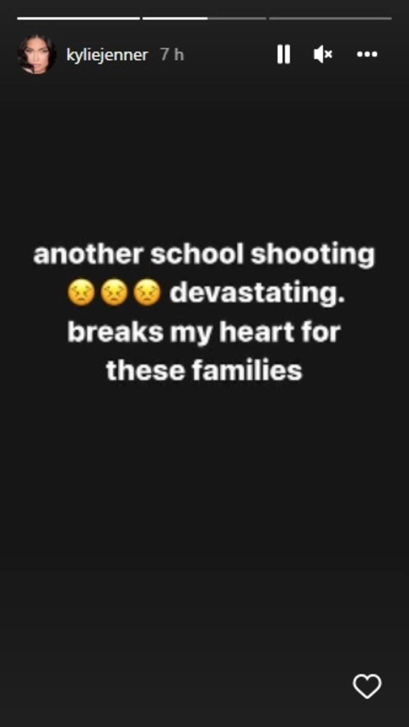 "Otro tiroteo escolar devastador. Me rompe el corazón por estas familias", publicó Kylie Jenner.