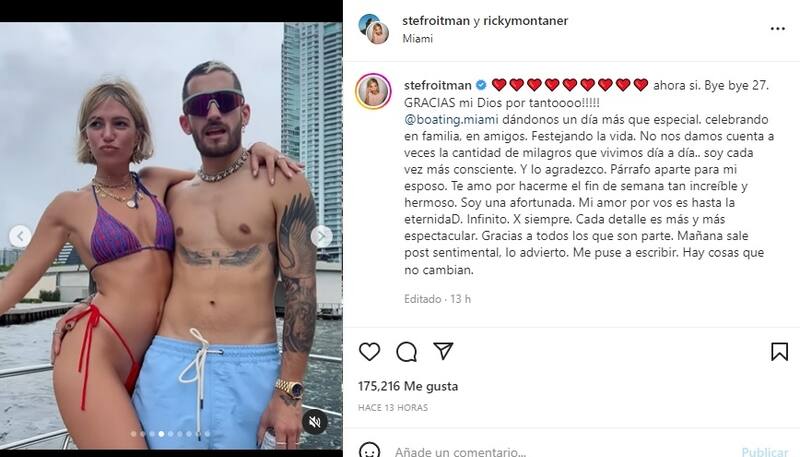 También tuvo palabras para Ricky Montaner: "Te amo por hacerme el fin de semana tan increíble y hermoso. Soy una afortunada. Mi amor por vos es hasta la eternidad. Infinito. X siempre. Cada detalle es más y más espectacular".