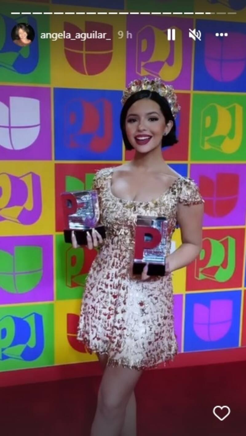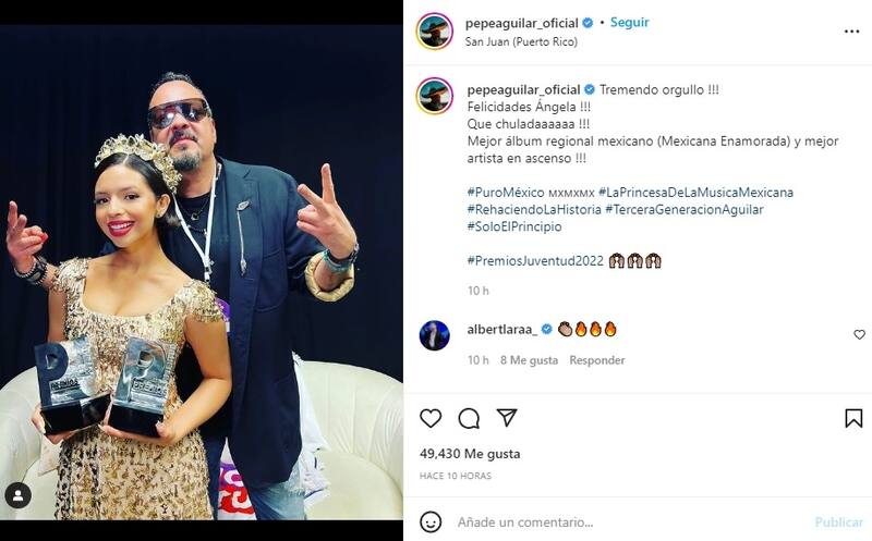 Pese a que no arrasó, la felicidad en clan Aguilar no se hizo esperar, ya que joven cantante se quedó con dos categorías de las siete en las que competía. "¡Tremendo orgullo! ¡Felicidades Ángela! ¡Qué chuladaaaaaa! ¡Mejor álbum regional mexicano (Mexicana Enamorada) y Mejor artista en ascenso!", destacó su padre en su cuenta de Instagram, donde compartió una foto junto a su hija y los premios.