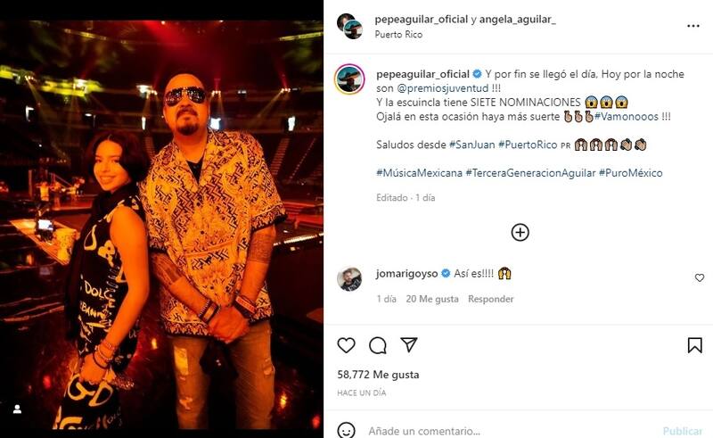 Atento a lo que podía ocurrir con su hija, el cantante estuvo presente en los ensayos de la ceremonia, en la que Ángela Aguilar iba a cantar. En su cuenta de Instagram compartió una foto juntos con el siguiente mensaje: "Y por fin se llegó el día, Hoy por la noche son @premiosjuventud y la escuincla tiene SIETE NOMINACIONES".