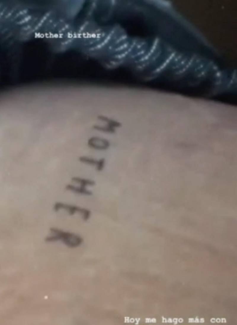 Evaluna publicó un video del tatuaje con profundo significado. Se encuentra en su vientre y tiene la palabra "Mother" en tinta negra. Es un clip muy corto pero con gran significado de la marca que le recordará por siempre el sentimiento de convertirse en mamá de su pequeña hija Índigo.