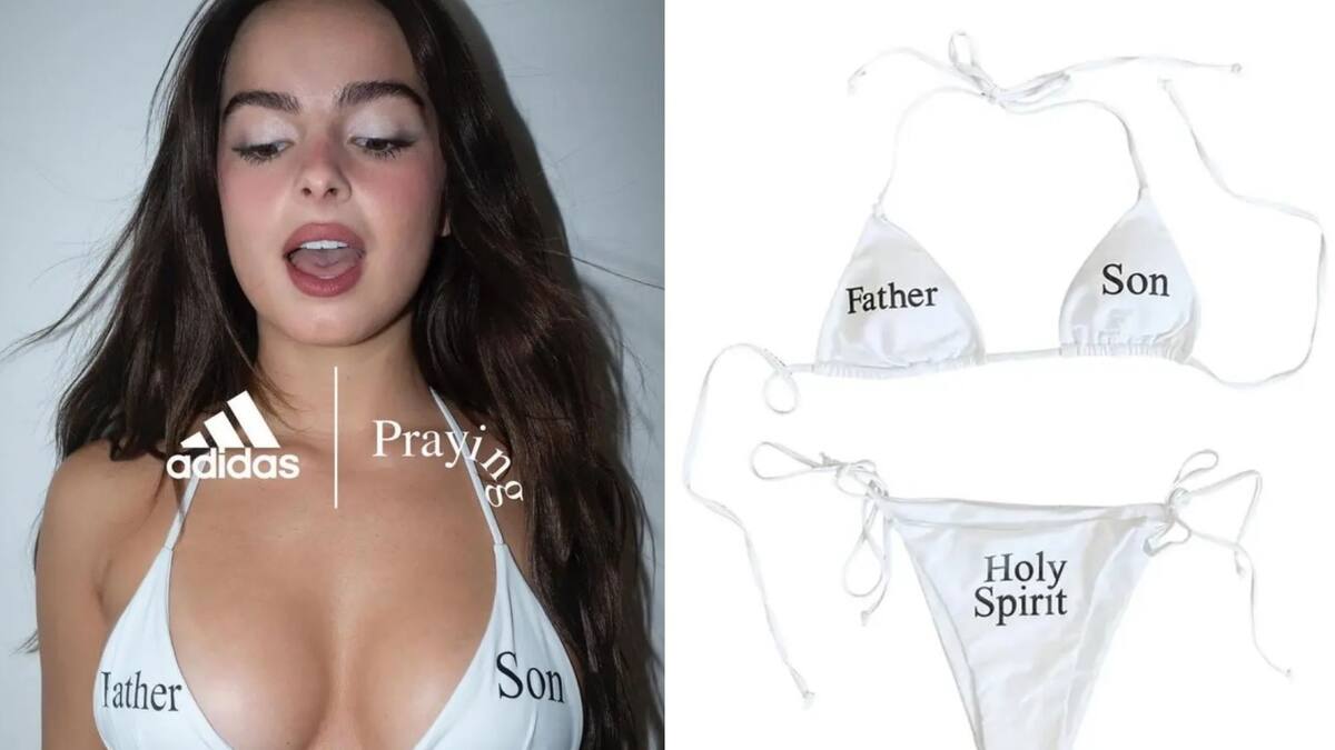 La joven subió una imagen de ella luciendo un particular traje de baño que no le generó gracia a la comunidad cristiana. Como parte de una colaboración entre Adidas y la marca de moda Praying, Addison Rae modeló un bikini blanco que en su top tenía las palabras "padre" e "hijo" escritas. A su vez, la parte inferior tenía estampado "espíritu santo".
