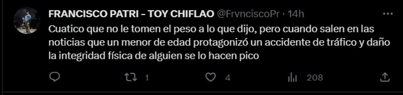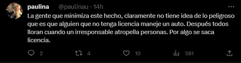 Mientras muchos usuarios de redes sociales señalaron que era una conducta común e intentaron quitarle la gravedad al asunto, otros reprocharon la irresponsabilidad de Hans de manejar sin su permiso de conducir.