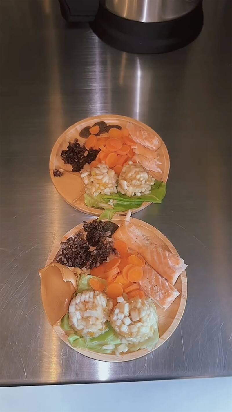El plato colorido incluía lechuga, peras, pollo, mantequilla de maní, zanahorias y salmón. Para adelantarse a cualquier reacción violenta, la niña de 9 años mostró una lista de alimentos humanos que pueden consumir los perros.