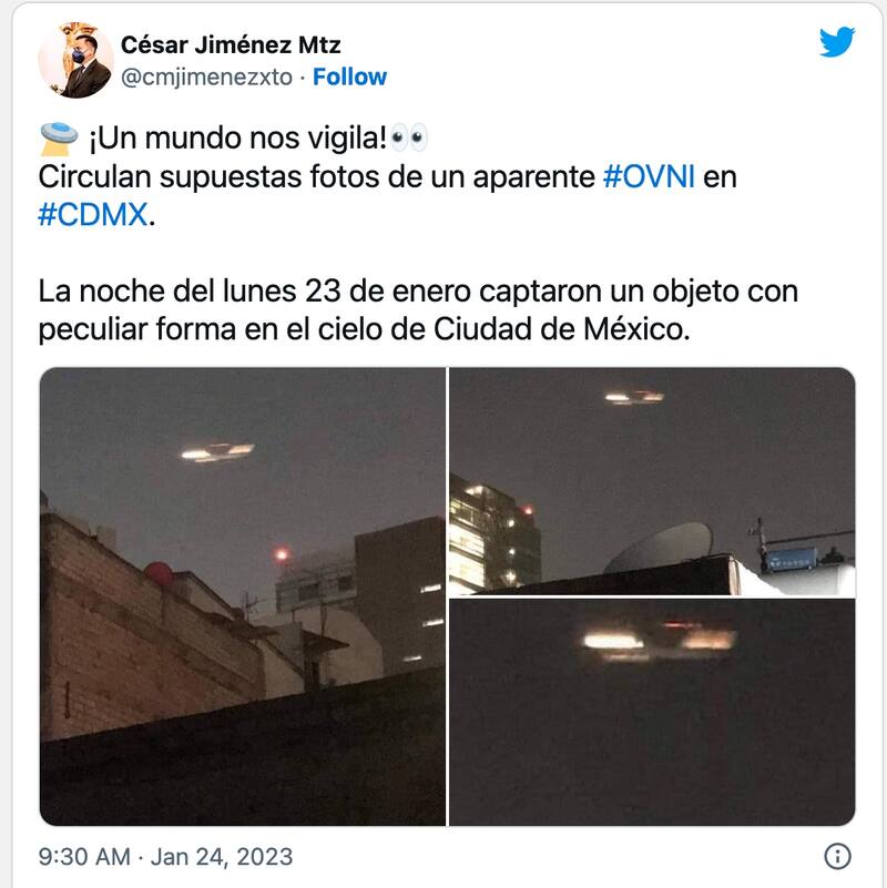 Toda esta semana se han hecho vírales en redes sociales como Twitter, fotos y videos que muestran distintos objetos voladores no identificados (OVNIS) volando por encima de distintas partes de la Ciudad de México. Los avistamientos se han visto a lo largo de toda la semana, comenzando con el 20 de enero y llegando hasta el 24 y 25.