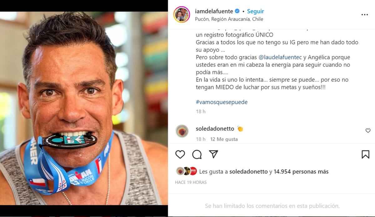 Cristián de la Fuente se destacó como un gran deportista en una compleja competición y tras esto, aprovechó enviarle un mensaje a su esposa, Angélica Castro.