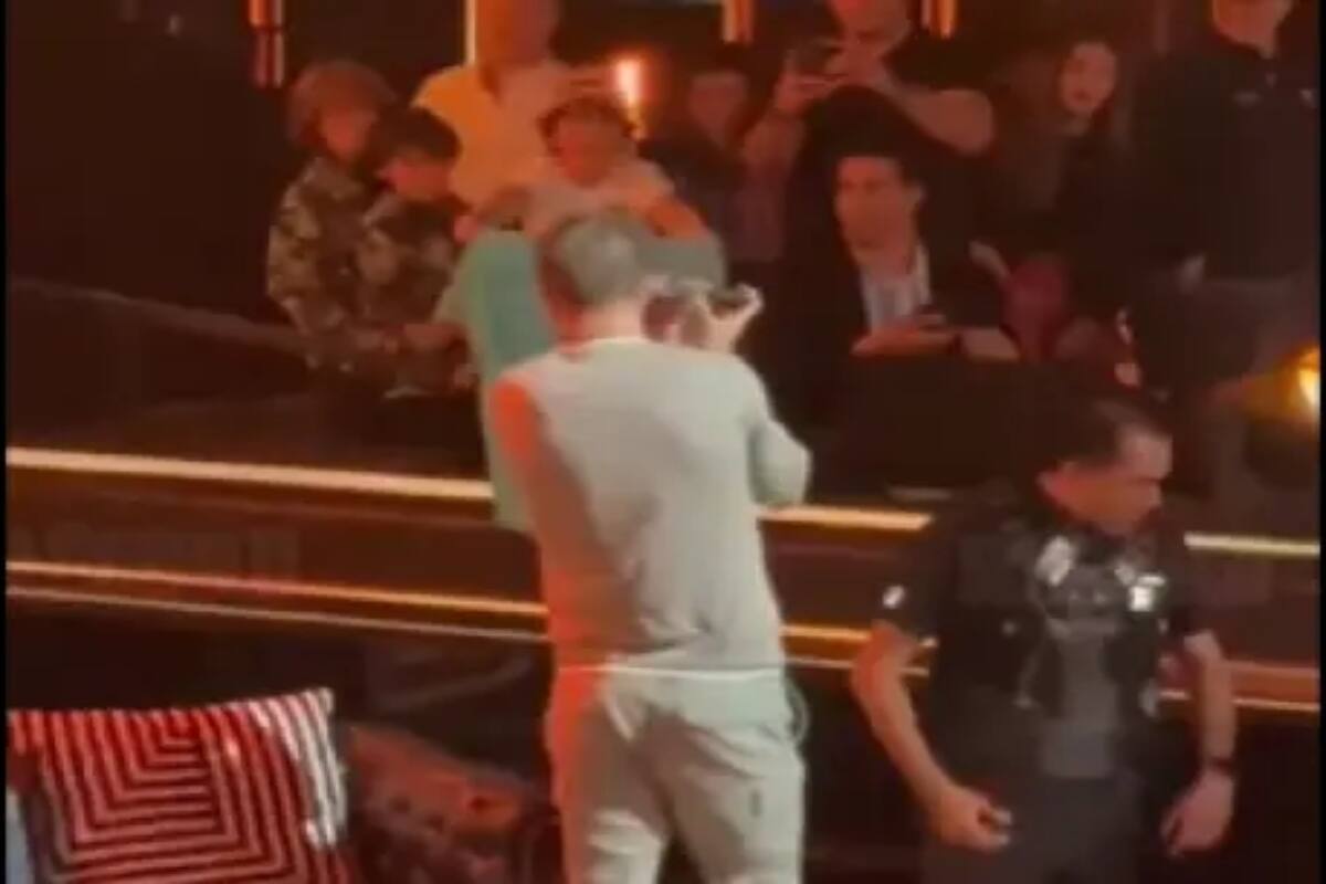 Entre medio de eso, y fuera de la transmisión oficial, se puede ver un registro del futbolista grabando al público con una mano, mientras que con la otra sostenía un plumón para firmarle diferentes objetos a los presentes.