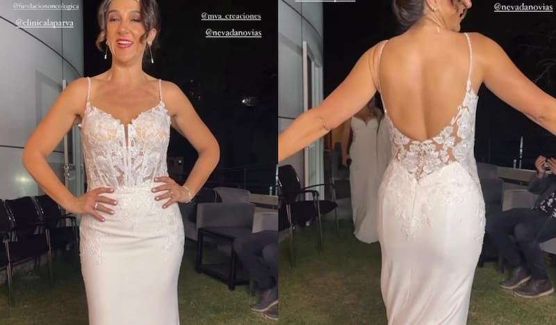 “Miren qué bonito el vestido de Nevada Novias, estoy ad portas de salir a la pasarela. La verdad es que es de mala suerte para el novio que ustedes me vean antes. Quiero agradecer a Nevada Novias por el vestido. Cásate con la Causa, es una causa muy solidaria”, señaló la comediante en sus historias.