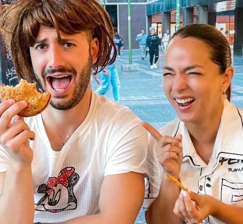 En el clip se aprecia que tienen enfrente tres productos de comida rápida y de un momento a otro comienzan a reirse a carcajadas. "Mi reacción cuando me entero las calorías que me estoy comiendo ¡La risa es salud y así las quemamos".