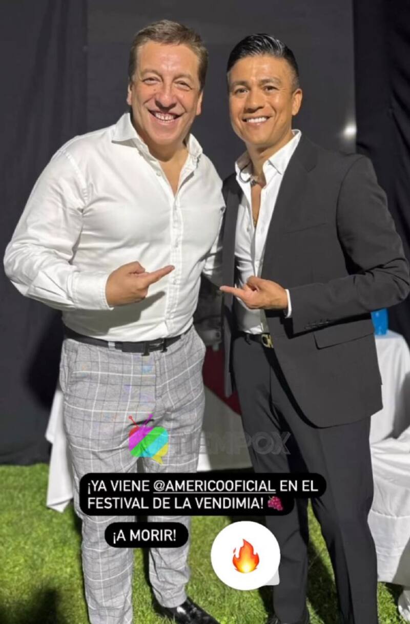 En la misma línea del Festival de la Vendimia 2023, Julio César Rodríguez compartió algunas postales de lo que ha sido su trabajo en el evento. Uno de los registros que más marco la segunda jornada del festival fue la presencia de Américo, con quien el periodista no quiso perder la oportunidad de sacarse una foto con el artista.