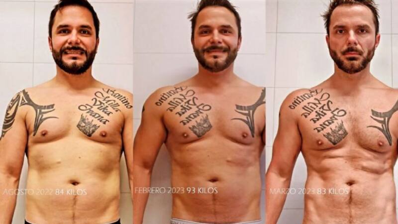 Según comentó en su cuenta de Instagram, llegó a pesar 83 kilos y se propuso bajar hasta los 77, sin embargo con los meses se sorprendió al ver que llegó a alcanzar los 93 kilos, situación que no lo desanimó y lo incentivó más a cumplir con su cometido.