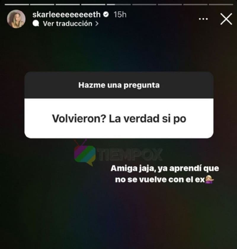 Ante la duda, Skarleth no tuvo problema en responder, negando haber regresado con Pailita. A su vez, no quiso dejar fuera una potente reflexión ante el término de su relación.