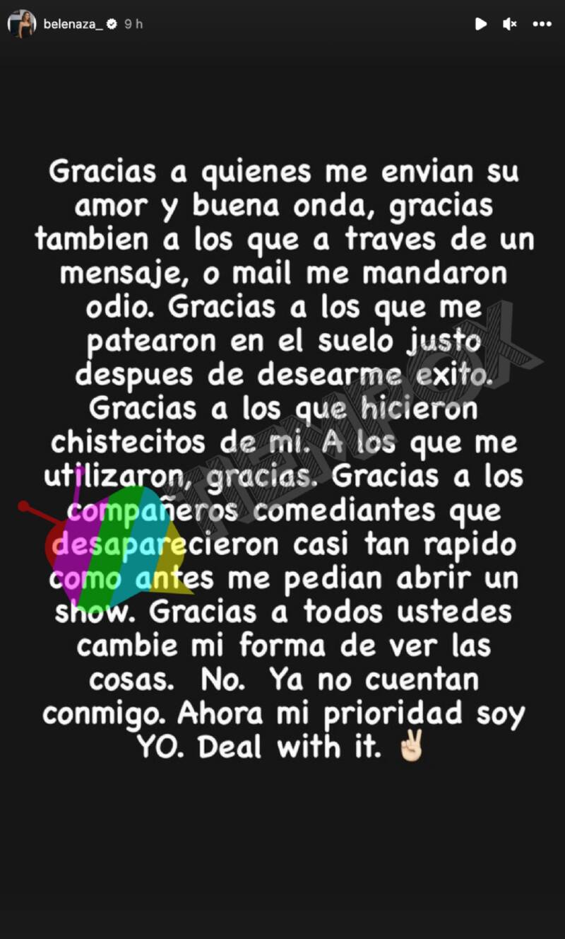 A continuación, Belén Mora expresó su molestia a aquellos que ocuparon su rutina para sus propios beneficios: "Gracias a los que hicieron chistecitos de mí. A los que me utilizaron, gracias".