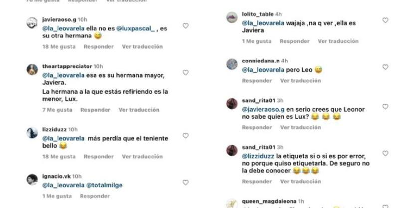 “Ella no es @luxpascal_, es su otra hermana”, “ella es su hermana mayor, Javiera”, “esa es su hermana mayor, Javiera. La hermana a la que estás refiriendo es la menor, Lux” o “na' que ver, ella es Javiera”, fueron algunos de los comentarios de que se podían leer.
