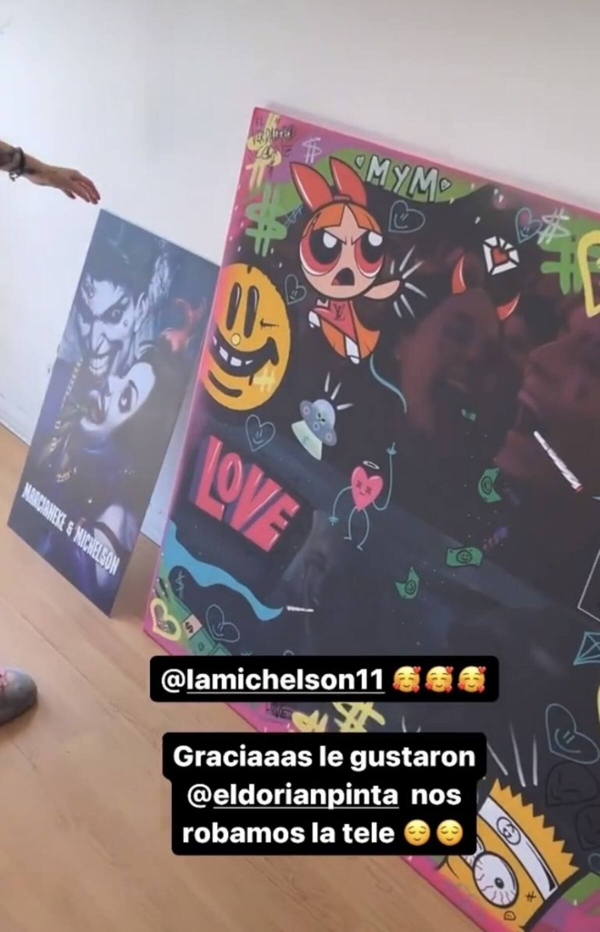Durante la mañana del 16 de marzo, Marcianeke sorprendió a Ignacia Michelson con un bonito detalle, se trata de dos cuadros con imágenes de la pareja intervenidos por el artista y muralista chileno Dorian Pinta, en el que le agregó múltiples de sus diseños propios para animar las postales.