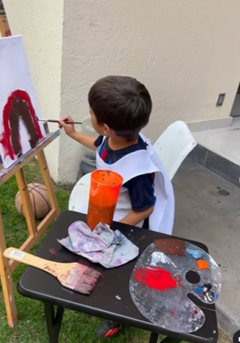 Una de las actividades que más disfruta Michelle Renaud es pintar, hace unas semanas compartió un video de la obra en la que estaba trabajando. Este hobbie lo comparte con su hijo a quien podemos ver en su publicación con un protector para su ropa pero plasmando un arcoiris en un pequeño lienzo.
