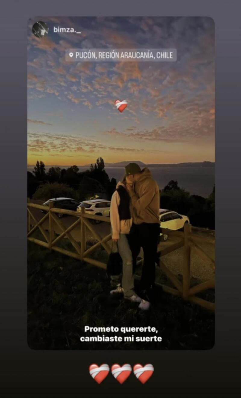 Ahí, la joven exhibió varias postales del hijo de Kanela, junto a emojis enamorados y la frase "te amo". Además, los tórtolos compartieron una romántica fotografía, donde aparecen besándose frente a un hermoso paisaje de la región de La Araucanía.