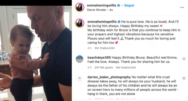“Él es puro amor. Él es tan amado. Y lo estaré amando siempre. Feliz cumpleaños, mi dulce”, comenzó Emma Heming en su publicación. “Mi deseo de cumpleaños para Bruce es que continúes manteniéndolo en tus oraciones y en las vibraciones más altas porque su alma sensible de piscis lo sentirá”, siguió la modelo finalizando con un agradecimiento por “amarlo y cuidarlo también”.