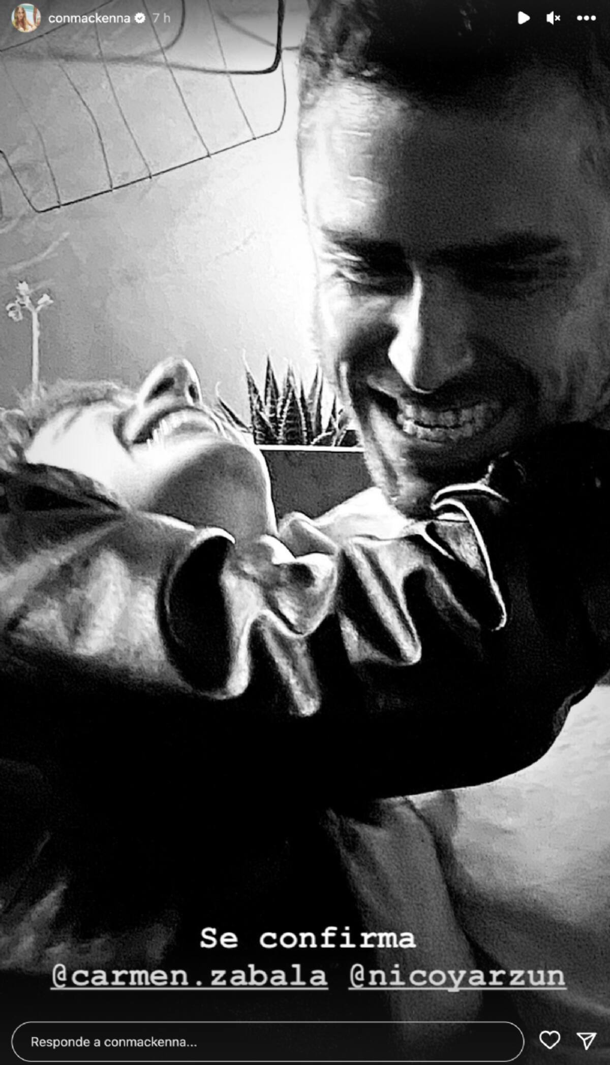 En sus historias de Instagram, la actriz compartió una bella imagen, donde Carmen Zabala aparece abrazando a Nicolás Oyarzún, mientras ambos sonríen.