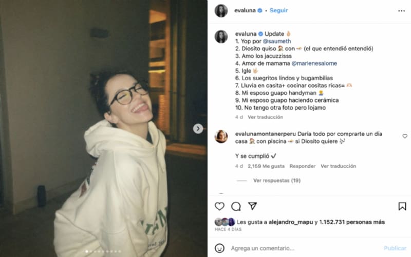 En el post que, Evaluna comenzó titulando cómo “Update”, la joven hizo un carrusel con fotos y videos de sus últimos días. Los cuales enlisto de la siguiente manera: