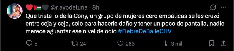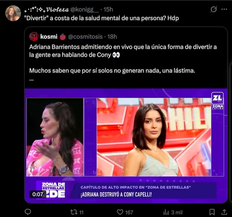 En dos fines de semana consecutivos Naya estuvo invitada a Primer Plano, además de que este domingo fue “invitada” junto a 100 de sus fanáticos a ir a primera fila a la final de Fiebre de Baile en el Movistar Arena. Mismos seguidores de los cuales Cony denunció hostigamientos y hasta amenazas.