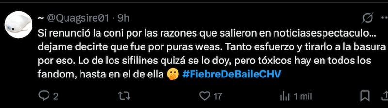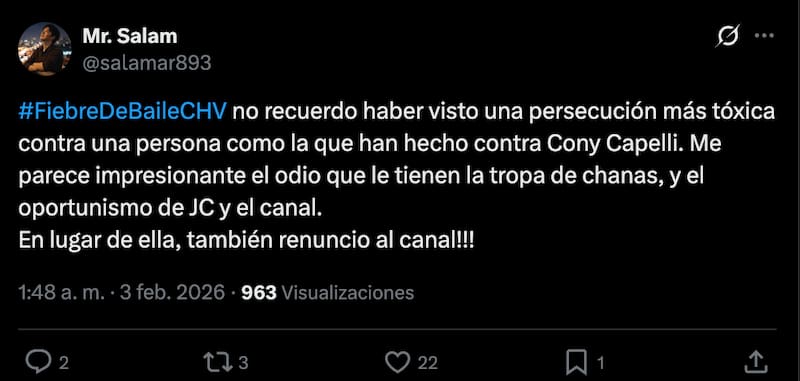 Pese a que la bailarina no se ha referido a su renuncia y fue Diana Bolocco quien comunicó sus motivos, los fans han deducido que todo puede tratarse de su conflicto público con Naya Fácil y el espacio que ha tenido la polémica influencer en Chilevisión, canal donde Capelli es rostro.