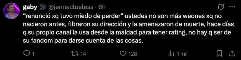 Por lo mismo, muchos se fueron contra JC por este hecho, además de criticarlo porque no habría cuidado a uno de los trabajadores del canal, como lo es la ganadora de Gran Hermano.