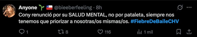 Cony se ha mantenido al margen de las redes sociales en las últimas horas, por lo que no ha confirmado si este fue el real motivo, pero ha sido suficiente para que los usuarios de redes sociales se hayan pronunciado por su renuncia.