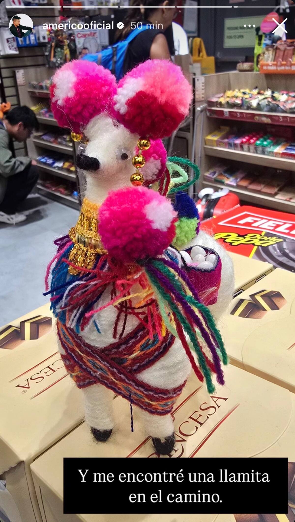 Mientras que hace un rato subió una historia de una figura de una llama bastante cariñosa, lo que se contrapone al momento que vive internamente Américo.
