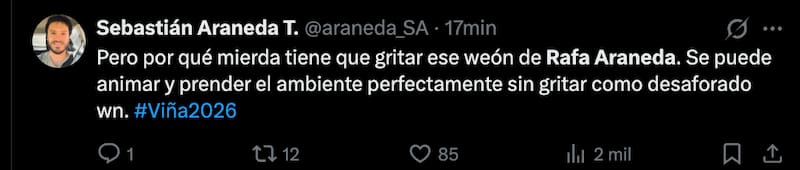 Las redes sociales dan para todo y si bien no muestran la realidad completa de las cosas, si muestran cierto sentir de la gente. Sobre todo cuando se trata del Festival de Viña 2026.