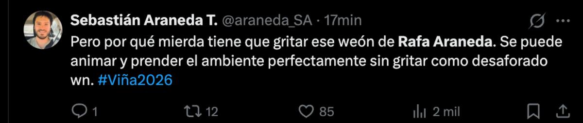 A los usuarios de X no les gustó el estilo fuerte de hablar de Rafa y lo cuestionaron por gritar mucho en el Festival de Viña.