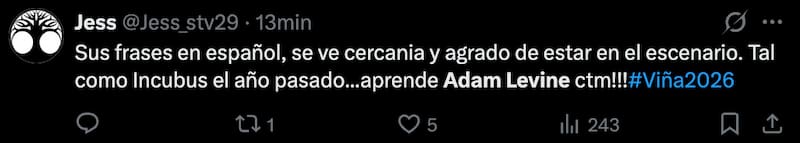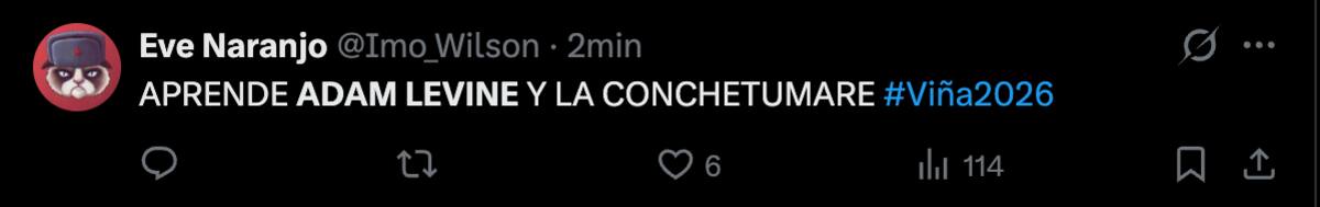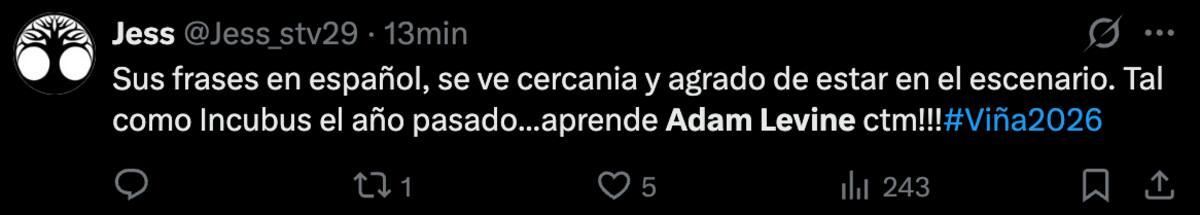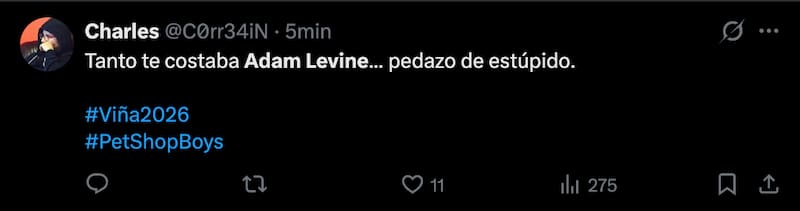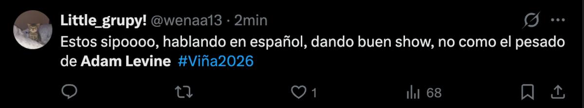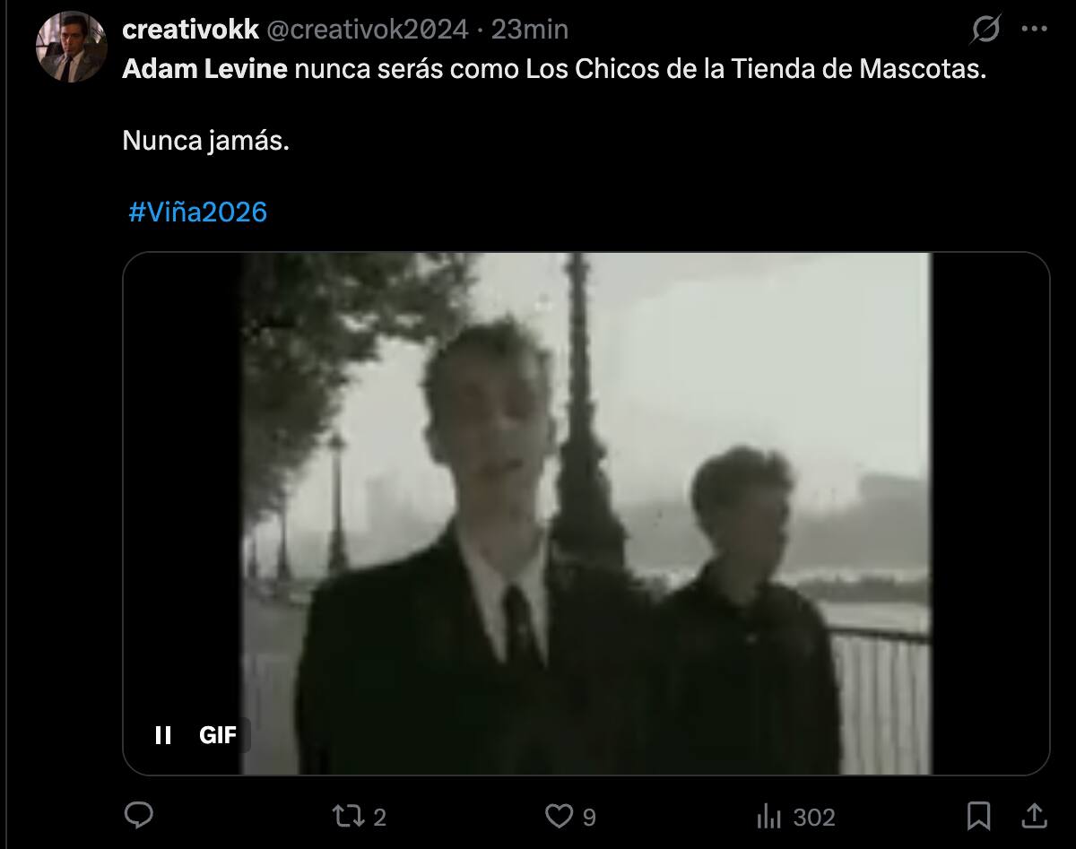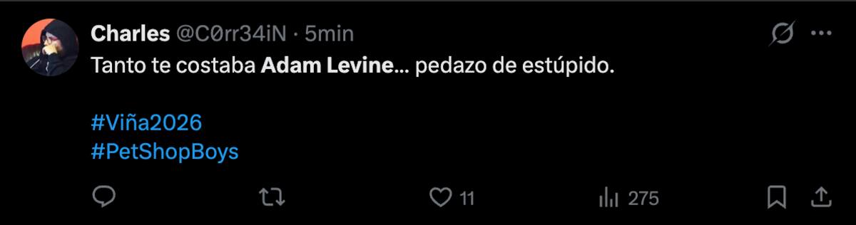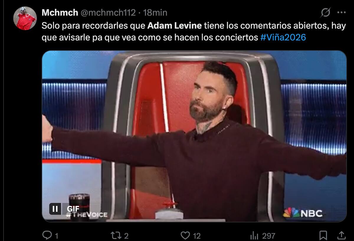 En X (Twitter) los televidentes se acordaron de Adam Levine, de Maroon 5, y su pésima presentación en el Festival de Viña en 2020. Con una actitud prepotente, la gente no olvida lo mal que cayó el cantante.