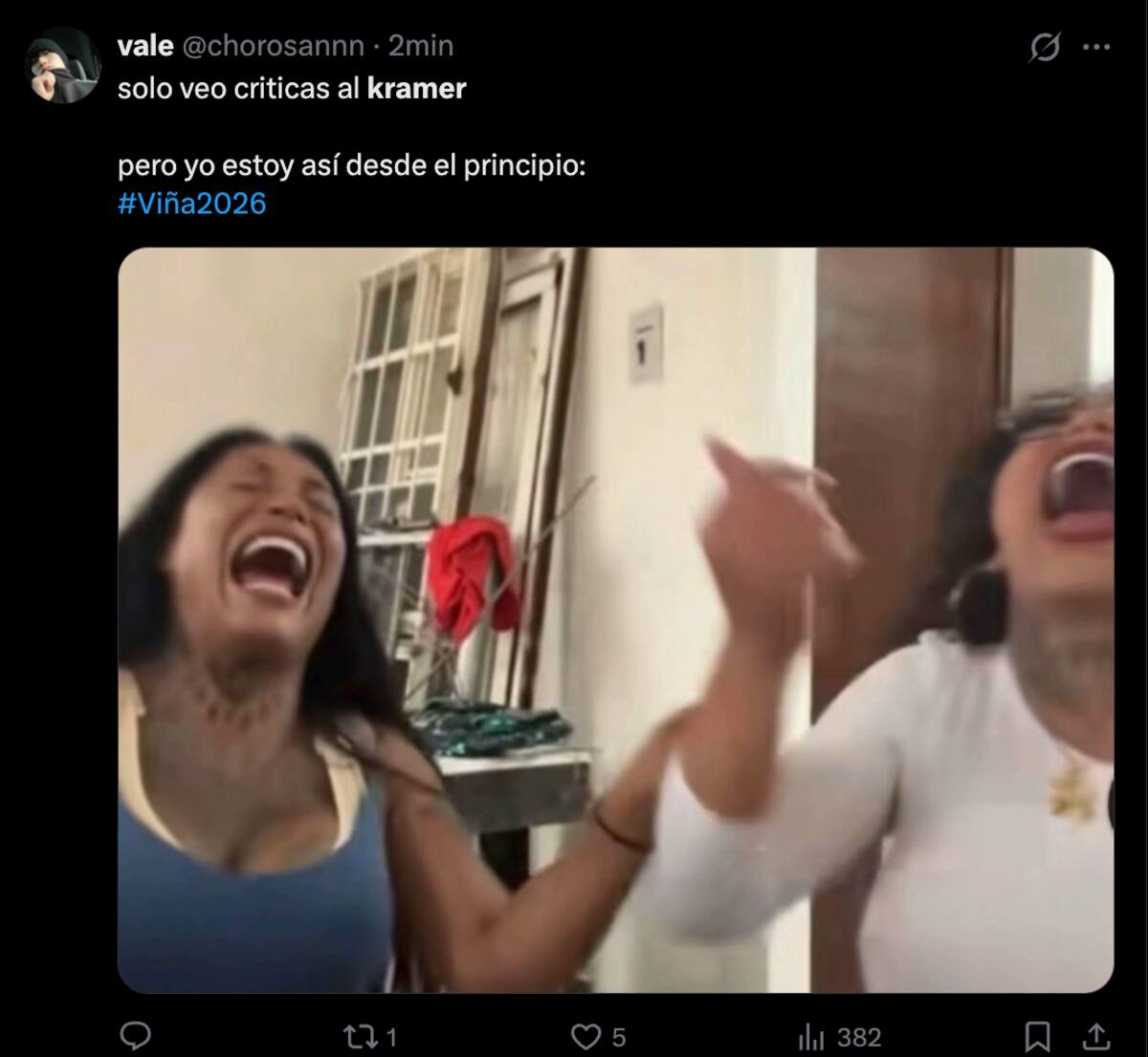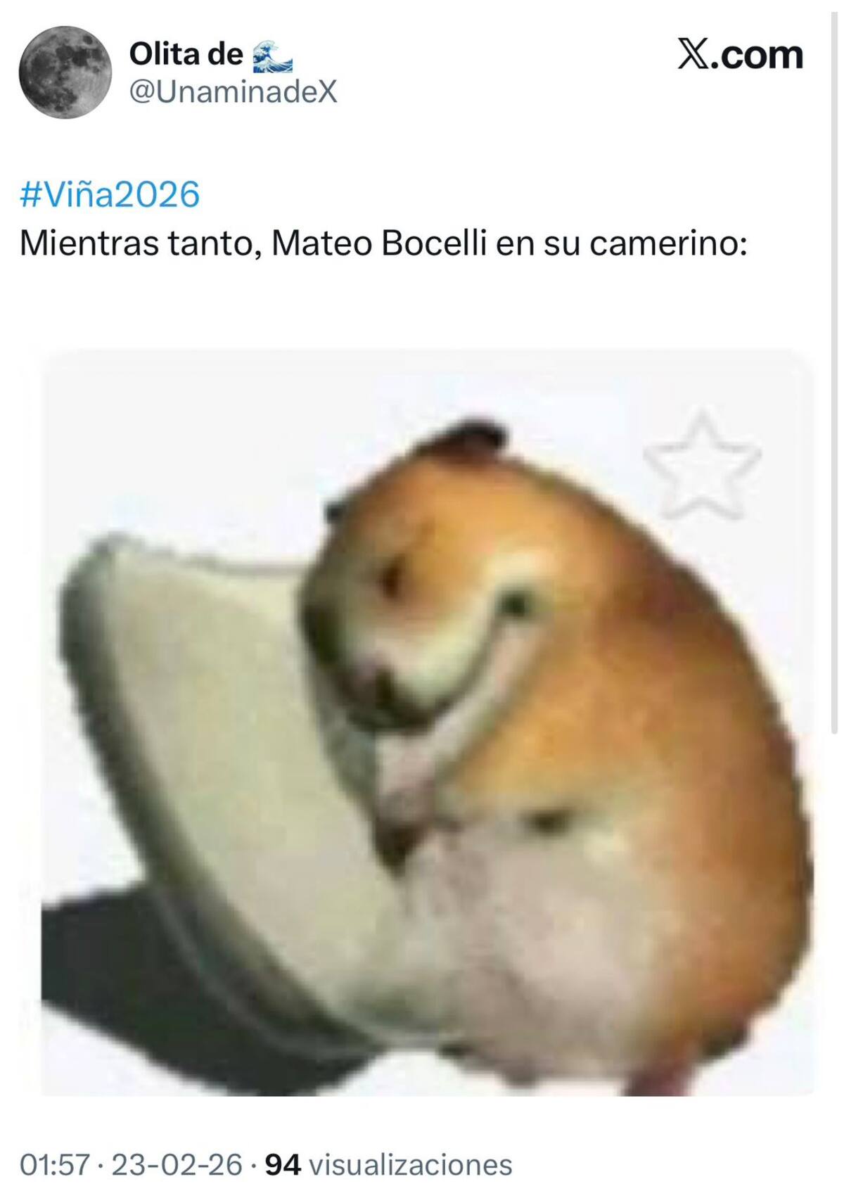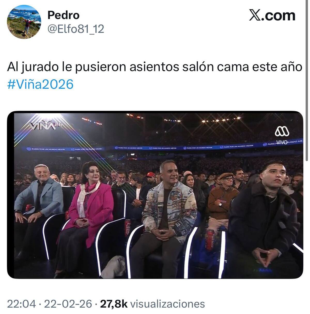 Como ya es tradición, cada momento vivido en la Quinta Vergara fue analizado al detalle por los usuarios de X, quienes no tardaron en convertir gestos, frases y situaciones inesperadas en una ola de memes que rápidamente se volvieron virales.