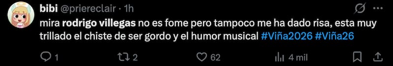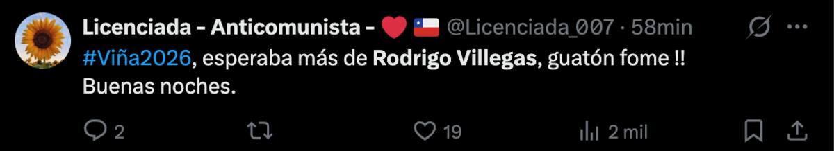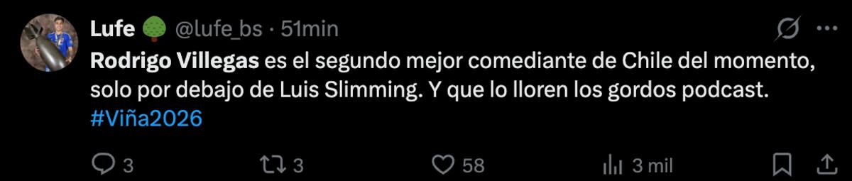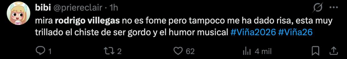 Los dos comentarios que más se repitieron fueron que Villegas de por sí era chistoso, recordándoles a varios el clásico “tío curado”. Pero por otro lado, muchos siguieron el tono de este domingo y no les convenció el humor de Rodrigo.