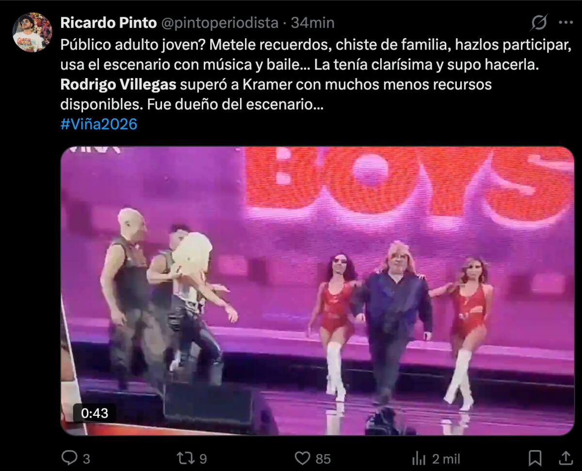 Claramente no como Stefan Kramer, pero Rodrigo Villegas se dividió entre buenos y algunos malos comentarios por su rutina en el Festival de Viña 2026.