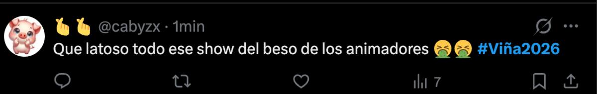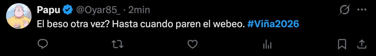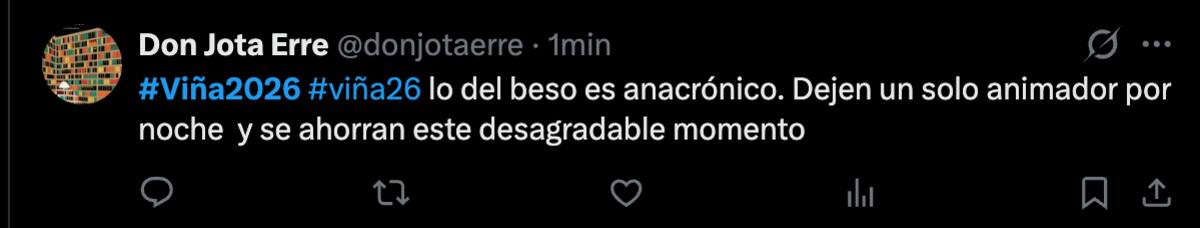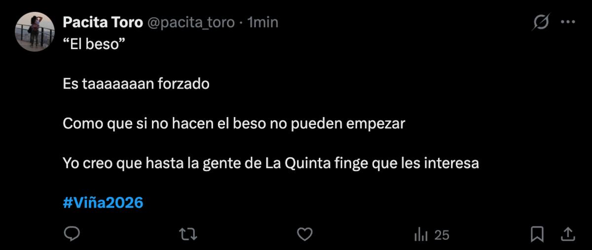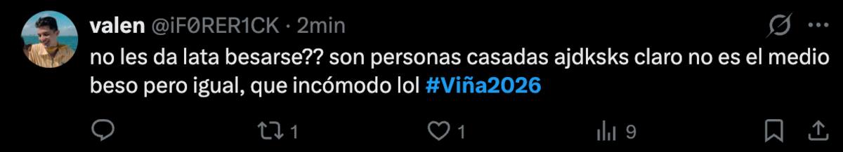 Y tras la obertura, en la Quinta Vergara Karen Doggenweiler y Rafael Araneda realizaron el ya tradicional beso entre ellos para comenzar la jornada.