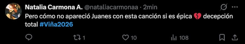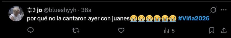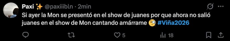 En redes sociales, varios usuarios van en contra de la organización del certamen viñamarino por la decisión que terminó frustrando a parte del público por no considerar el junte de ambos artistas en un dueto que hubiese sido avalado.