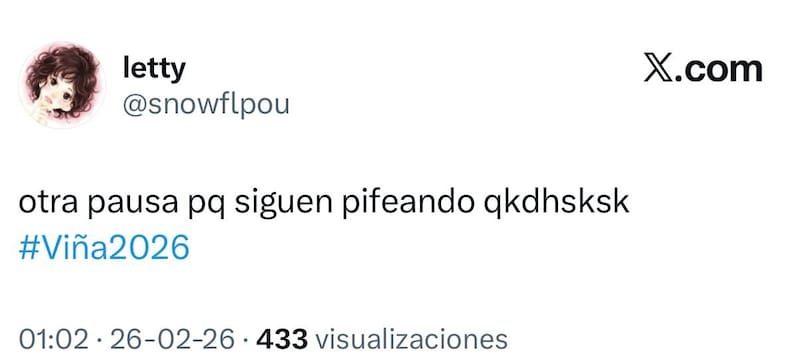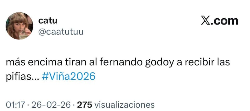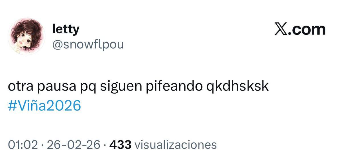 Poco cariño con la transformista que se ganó el cariño de la Quinta, y que por lo mismo, mantiene al monstruo pifiando en la galería, incluso ya habiendo terminado la competencia internacional.