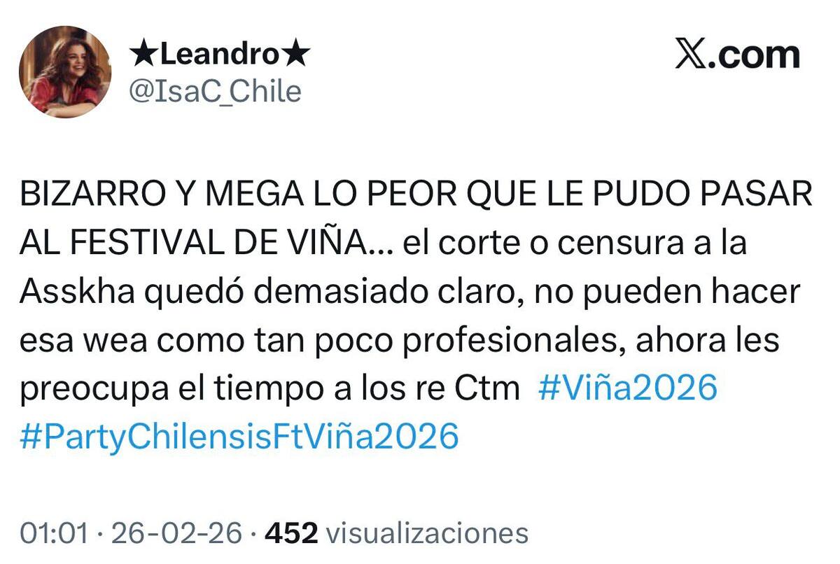 Y es que si bien pudo pasarse el tiempo acordado, hay transversalidad en que fue muy fea la forma en que se le cortó la presentación a Asskha, casi sin dejarla hablar ni dándole la opción de despedirse.