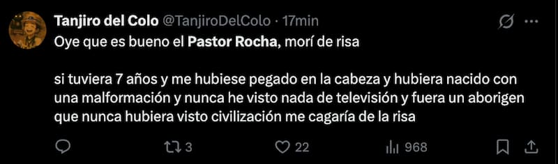 Una actuación diferente y llena de chistes jugando al filo fue lo que hizo Santiago Andala, más conocido como Pastor Rocha.