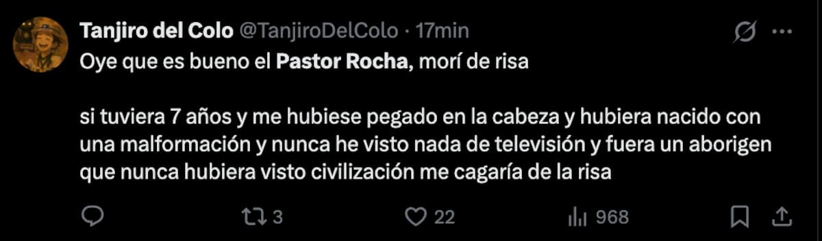 Una actuación diferente y llena de chistes jugando al filo fue lo que hizo Santiago Andala, más conocido como Pastor Rocha.