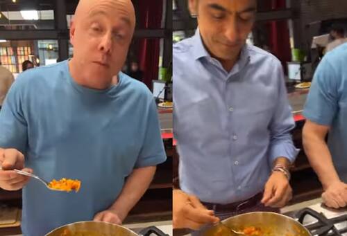 En este se puede ver cómo ambos jueces se "disputan" un arroz, raspando el fondo de una olla.