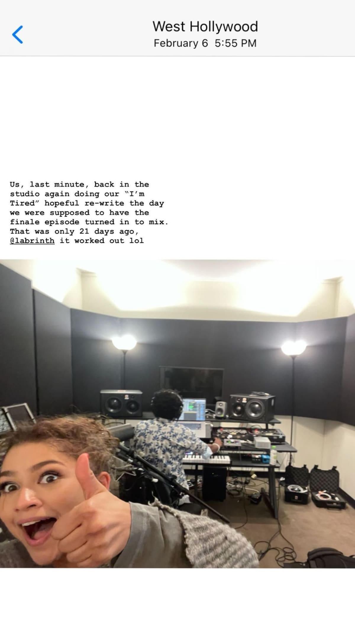 Zendaya también compartió una foto y un video de ambos trabajando en las canciones en sus historias de Instagram.