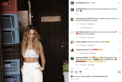 El mensaje publicado por Claudia Bahamón desde ya sobrepasa los 10 mil likes y en los comentarios de sus seguidores se resaltan la belleza y el talento de la presentadora.