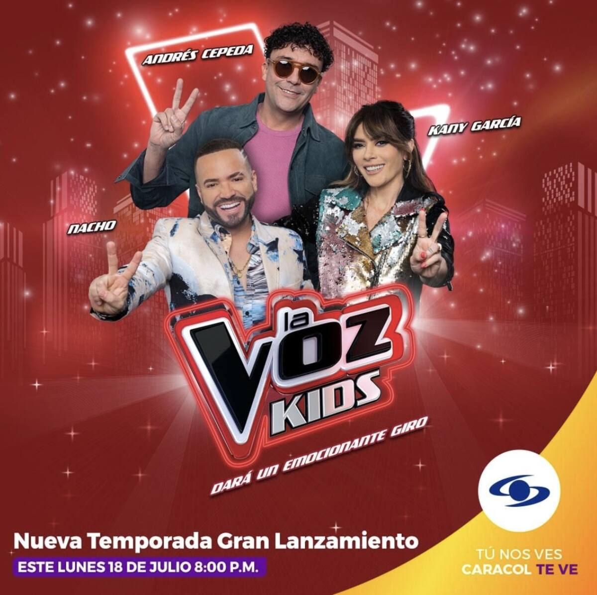 Por su parte, serán Laura Acuña e Iván Lalinde quienes presentarán cada noche en las pantallas de Caracol Televisión el concurso infantil. El gran estreno de "La Voz Kids" es este lunes 18 de julio a las 8:00 p. m. por Caracol Televisión.