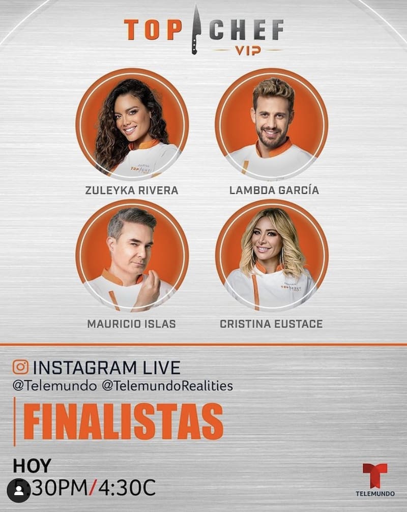 Zuleyka Rivera, modelo; Lambda García, actor; Cristina Eustace, cantante y empresaria; y Mauricio Islas, actor, fueron los personajes que llegaron a la final de "Top Chef VIP".