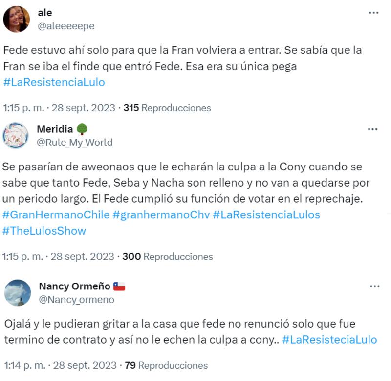 Por lo mismo, hay quienes aseguran que Fede entró a “Gran Hermano” Chile solo con la misión de acercarse y generar un nexo con Constanza Capelli, después votar por Fran, y que cuando ella reingresara al reality dijera públicamente el voto que le dieron para generar alguna hipotética pelea.