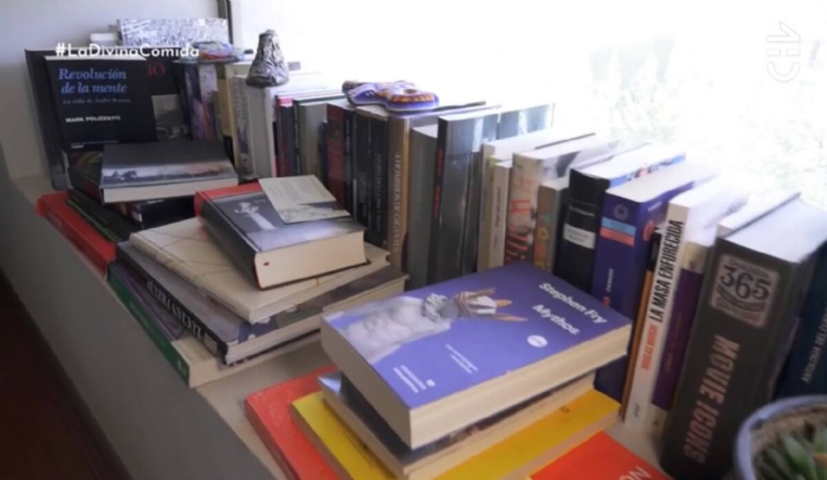 El departamento del chofer de Uber, además de estar rodeado de coloridas pinturas, también tiene en varios sectores cientos de libros, declarándose un fanático de la lectura.