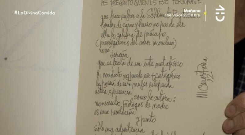"Nicanor era parte de las amistades de mi familia, de mis padres y le pasé el libro para que viera si acaso le gustaba. Ahí me dijo 'todavía no lo pases a imprenta que te voy a llevar el prólogo'", reveló la artista, quien además mostró con mucho cariño una foto del recuerdo de su padre.